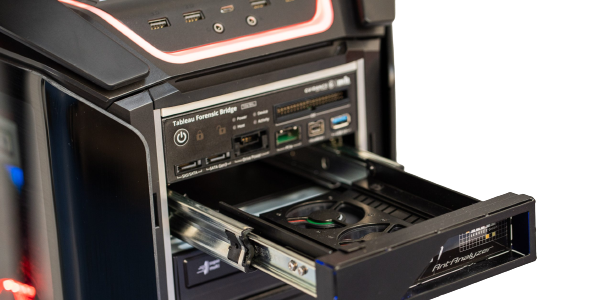 Thanks to the unique IceTray cooling fan beneath the Tableau T356789iu forensic bridge, the source drives will be actively air-cooled. The aluminium cooling fins support the cooling process as well. This ensures the reading of the suspect drives at maximum speed without reaching damaging temperature ranges.