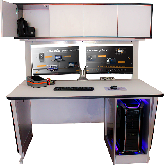 The Forensic Desk provides ergonomic design and generous space-saving and result-enhancing work space for your forensic gadgets and equipments. Perfect cabling system combined with a perfect monitor holder system