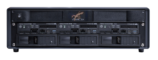 This desktop extension from mh Service is equipped with three internal writeblocking devices, the Tableau T356789iu Universal Bridges for PCIe, IDE, SATA, SAS, USB 3.0 and FireWire media. This solution allows for the time saving imaging of three suspect media devices at the same time, which guarantees a safe and court-suitable copy without any changes of the data. The GeCo Station is a perfect upgrade for other mh computers/servers in your office.