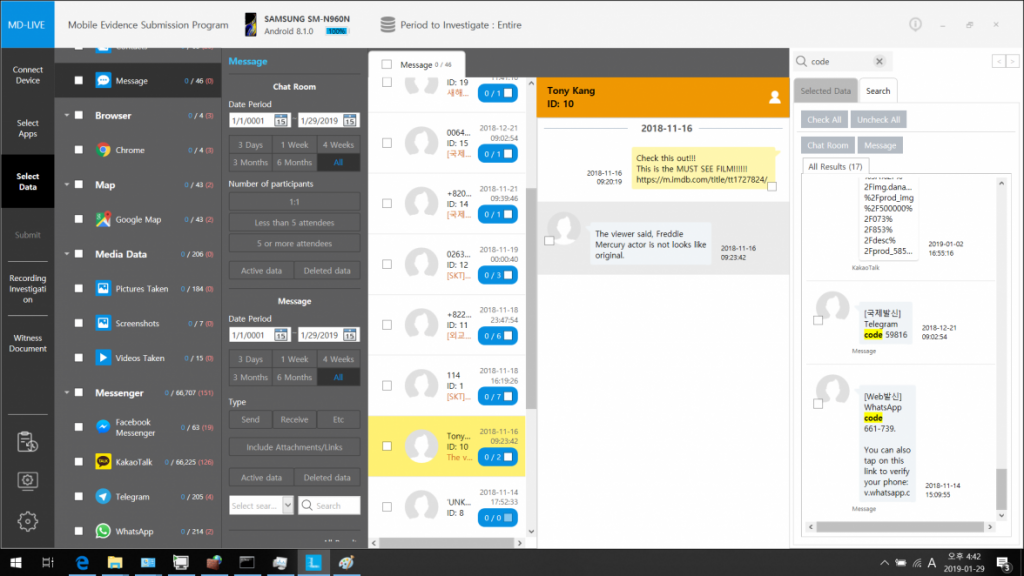 MD-LIVE is a mobile live forensic product with a smooth user experience which can support logical extraction and quick data analysis. It also supports the selective acquisition from the evidence without privacy infringement, the screen capture and recording of smartphone display mirrored and forensic process recording by an external camera of the internal recording feature.